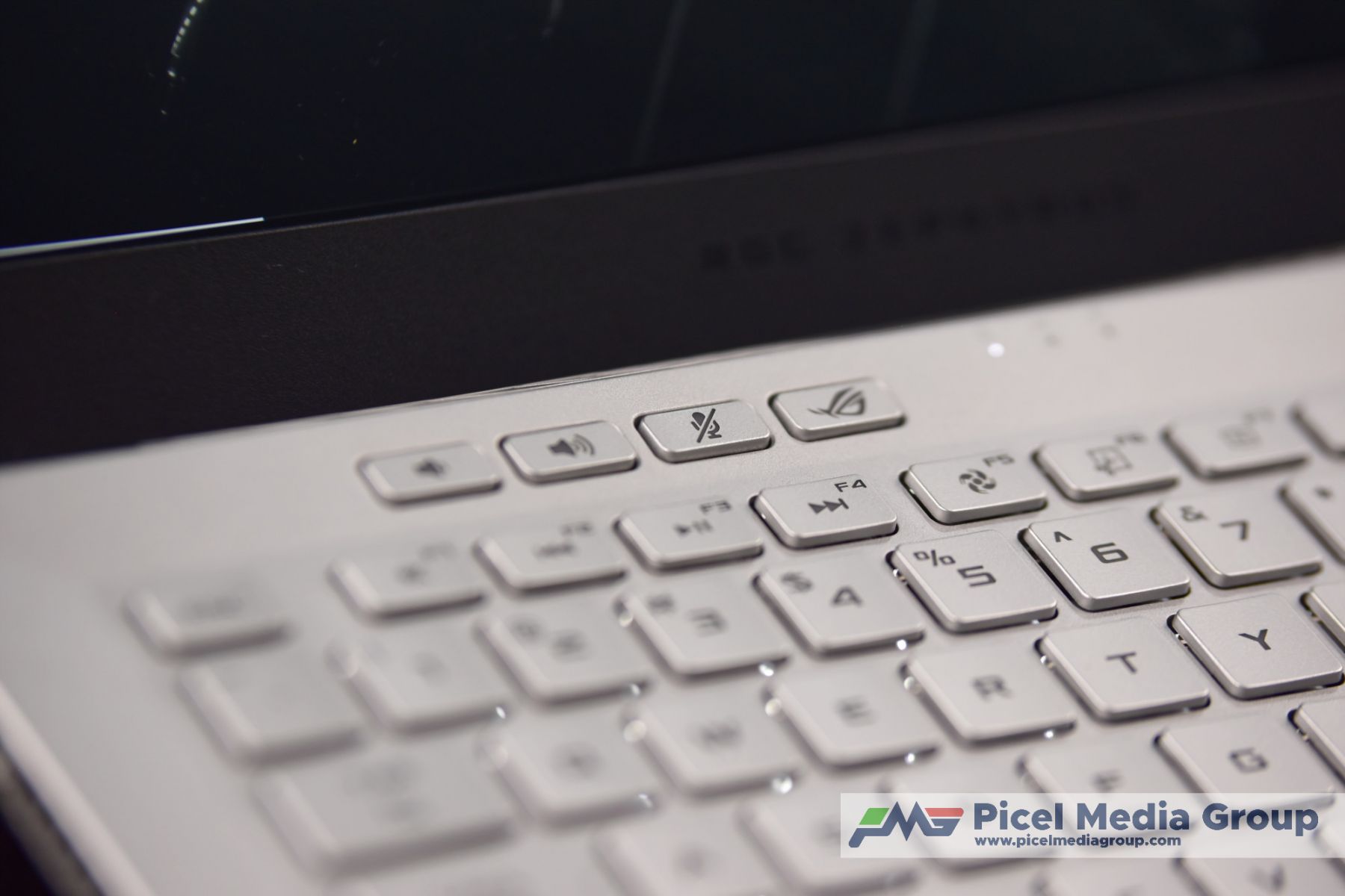 Di atas keyboardnya, terdapat 4 buat tombol dedicated untuk volume up, volume down, mute microphone dan tombol berlogo ROG untuk menjalankan aplikasi Armoury Crate.